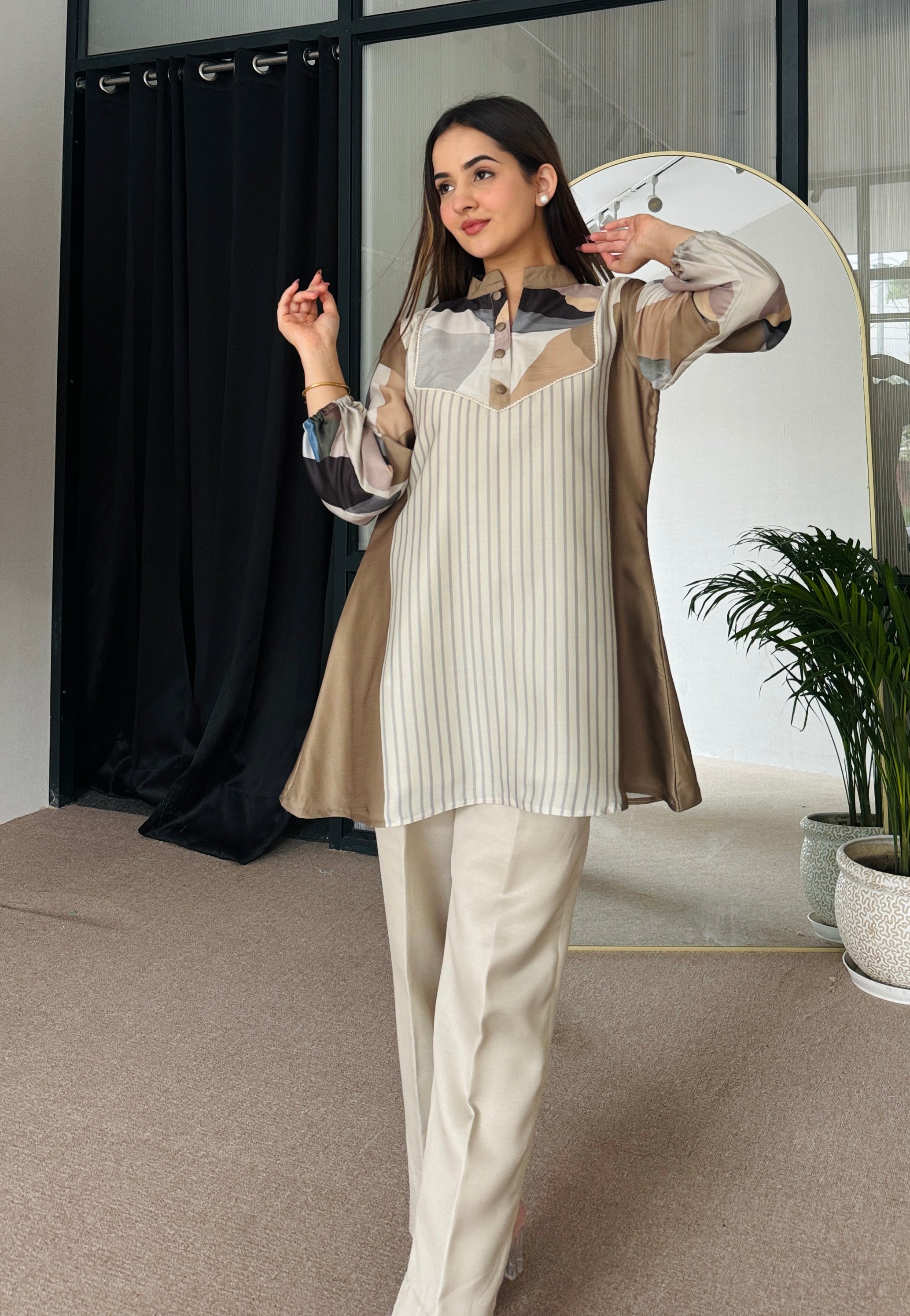 Embrace the blend of contemporary style and classic elegance with 'Cecilia'. Perfect for any occasion, this set ensures you stand out with its vibrant patterns and impeccable fit.
