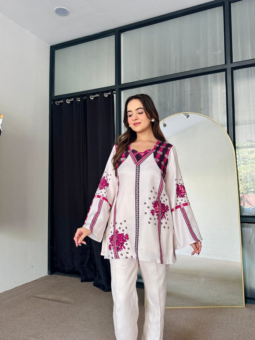 Embrace the blend of contemporary style and classic elegance with 'Cecilia'. Perfect for any occasion, this set ensures you stand out with its vibrant patterns and impeccable fit.