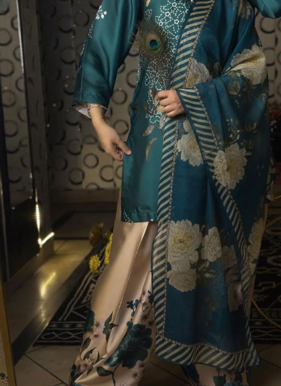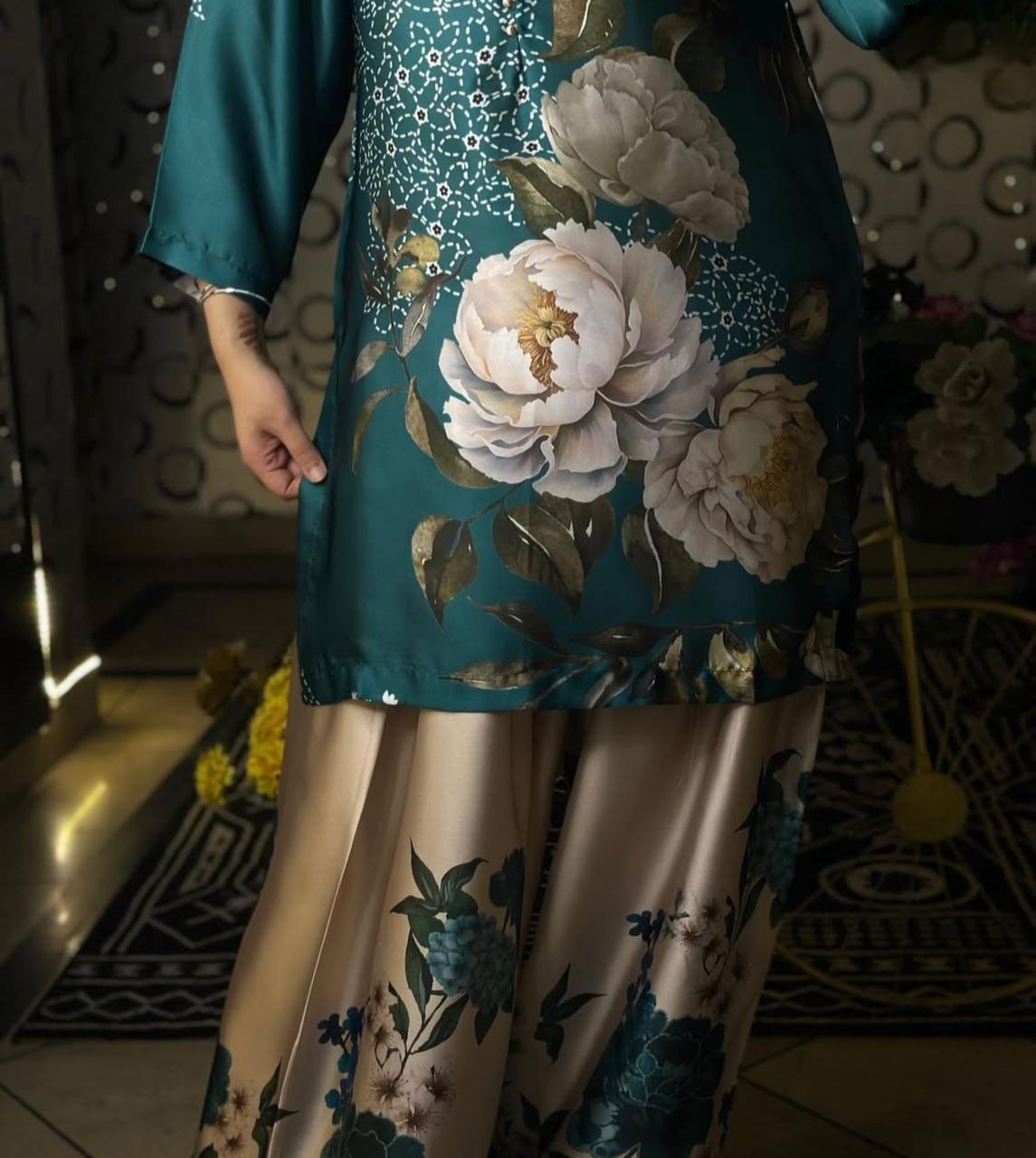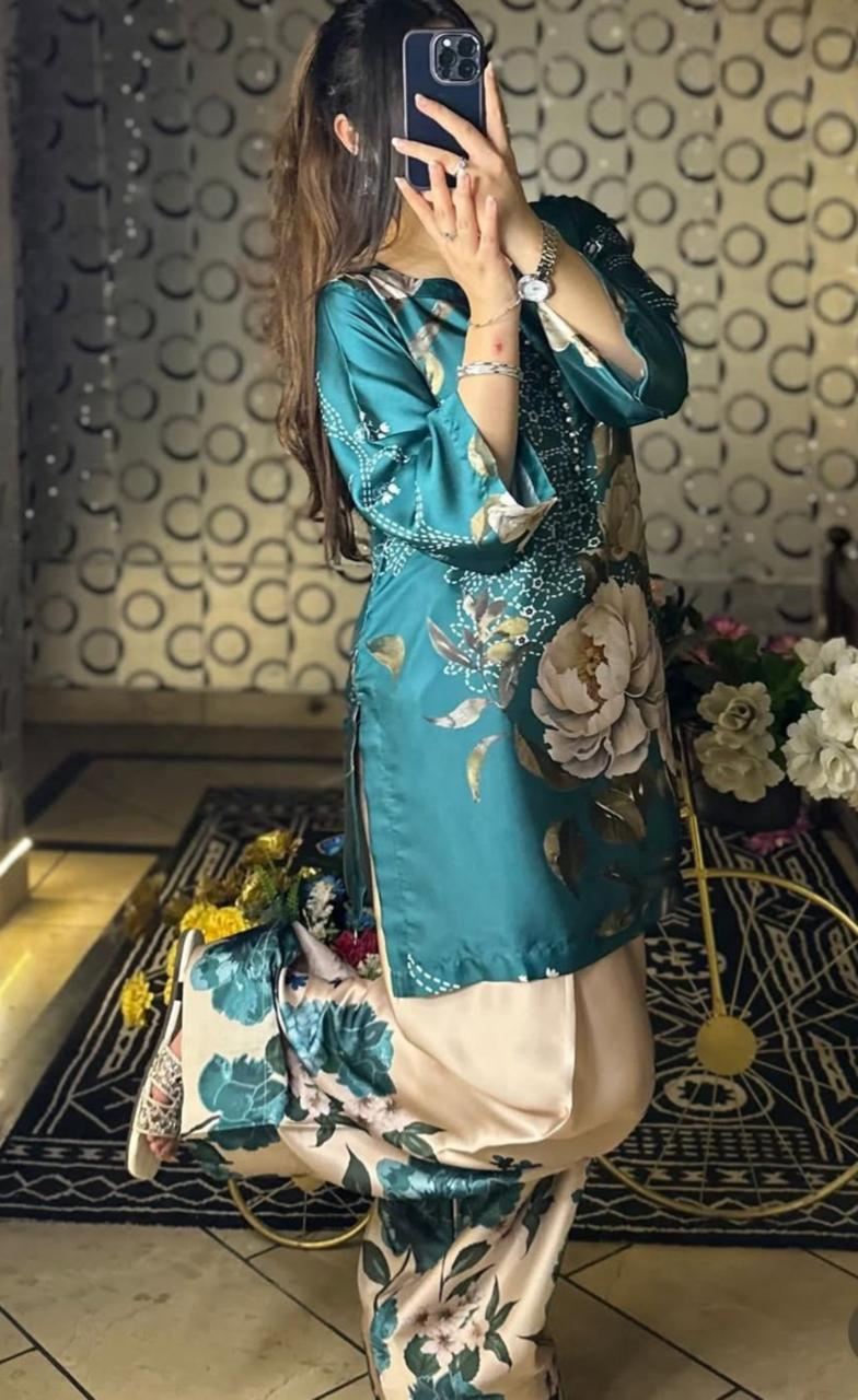 “Zeenat-e-Mashriq” 🌿 Front And Back Allover Digital Printed Shirt With Flapper And Printed Dupatta Size Measurement  Chest...