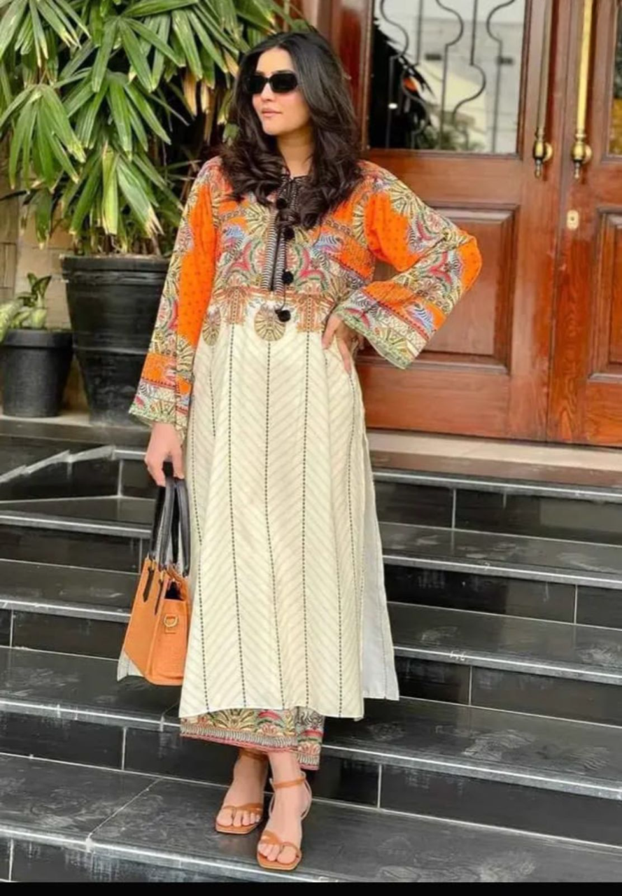 Experience elegance and comfort with our Digital Printed Long Kurta Set, crafted from soft and breathable Swiss Lawn fabric. Designed with high-quality stitching and full overlock finishing, this outfit promises durability, neatness, and a premium fall.